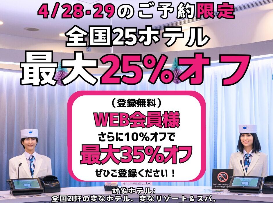 Limited to 2-days reservations on 28(Tue) and 29(Wed) of Apr
